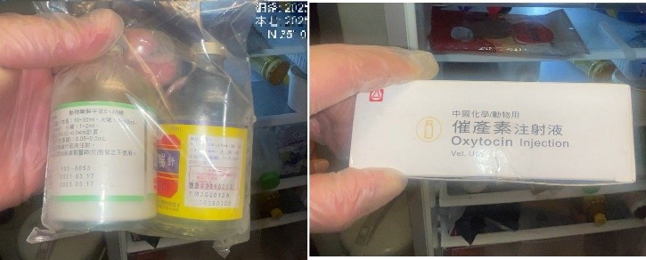 謝嫌住處散佈動物用藥品,包含疫苗、藥品、催產素。圖片來源:新北市動保處