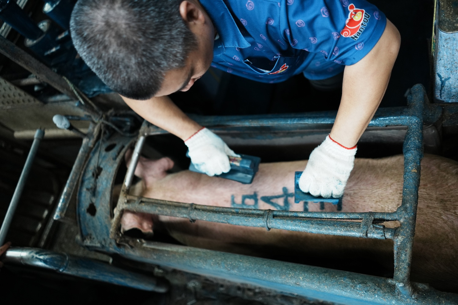 每天在太陽還沒升起前,豬農就會將養豬場的肉豬趕上運豬車,經載運司機確認頭數、過磅後,再把豬送往拍賣市場——這是不少人知道的台灣豬最後一哩路。