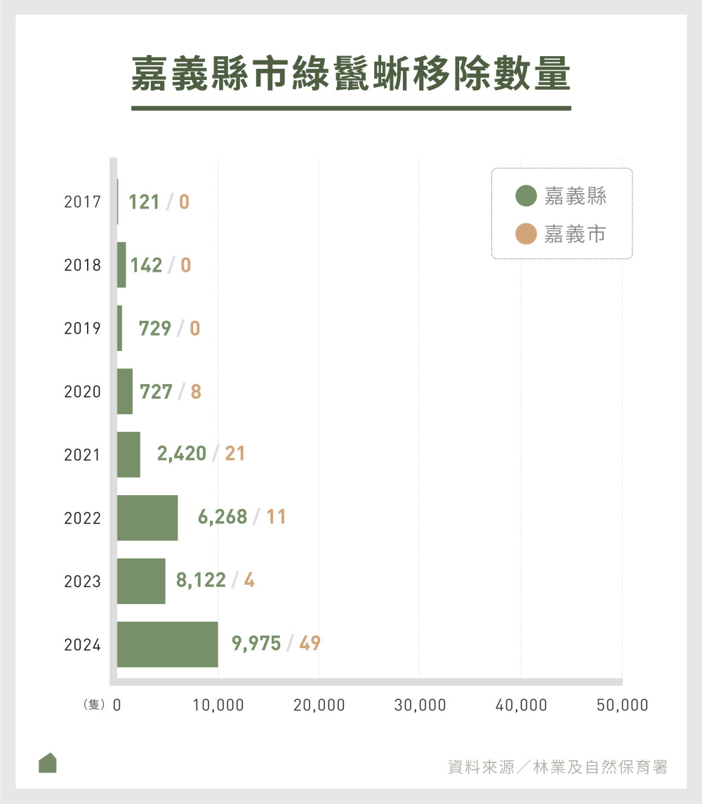 嘉義縣歷年綠鬣蜥移除獎勵金。資料來源|嘉義縣政府農業處
