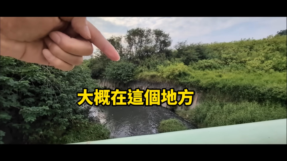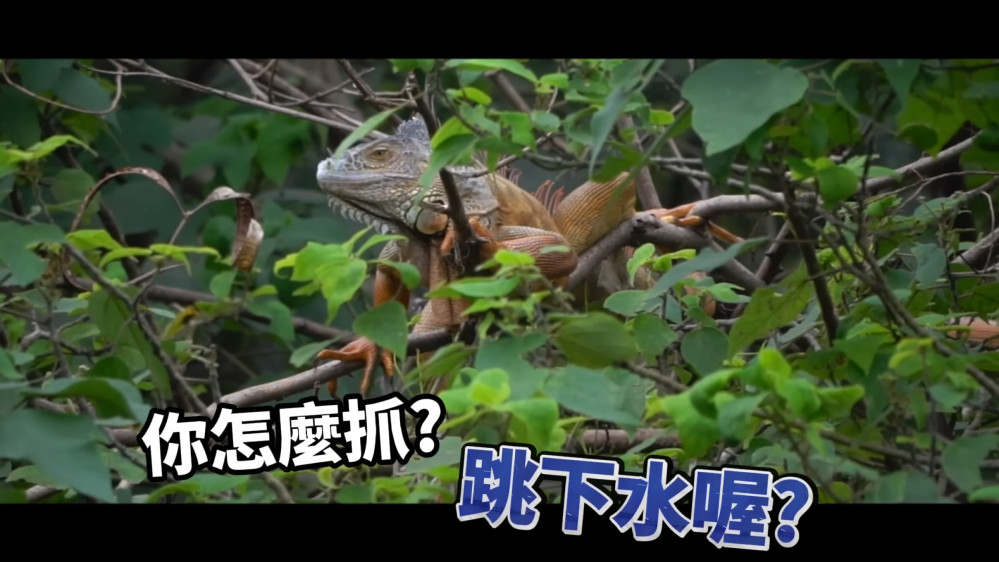 J爸在影片中表示,雖然看到溝渠邊上的綠鬣蜥,卻無法接近捕捉。圖|截圖自J爸YouTube頻道影片