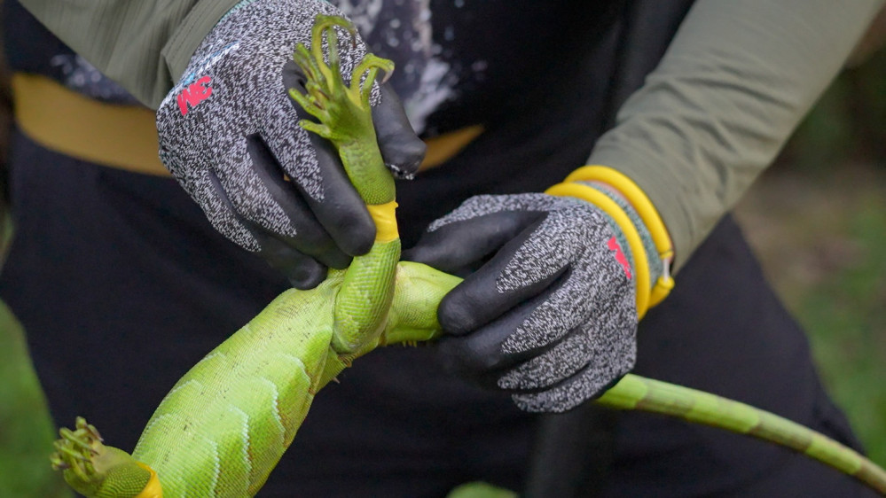 「台南就自己跟J爸合作;高雄那個團隊是我們幫高雄市政府找來的;屏東一開始請陳老師(陳添喜)幫忙,後來再找的團隊,裡面的成員是之前在幫忙移除埃及聖䴉的。」林保署保育管理組簡任技正鄭伊娟說,中央會協助地方媒合移除團隊、提供指導、定期檢視綠鬣蜥防治情況,就是不希望地方再因為沒經費、沒人力或沒專業技術消極任憑綠鬣蜥入侵。